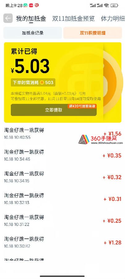 第一天就可以领5圆的加抵金,11.11-11.14可以无门槛抵扣使用,满20可以提前领取使用。