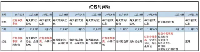 3.签到红包领取时间:11月1日-11月11日开奖时间:11月11日3点