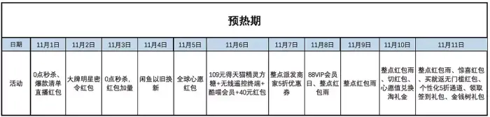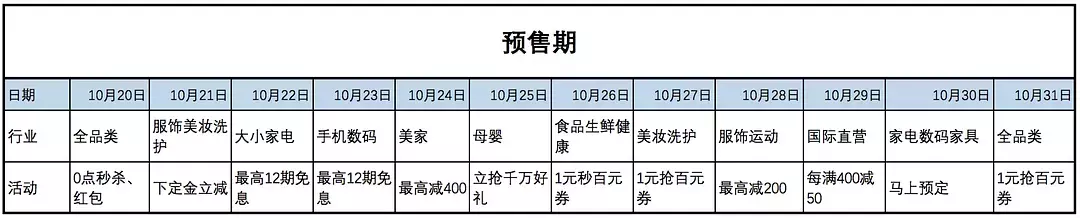 >>> 2018双十一将分为预售期、预热期、售卖期。