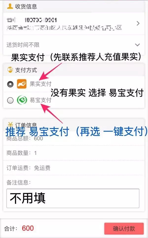 支付方式可选果实支付(需要提前联系推荐人购买果实),也可选择易宝支付:一键支付 银行卡付款