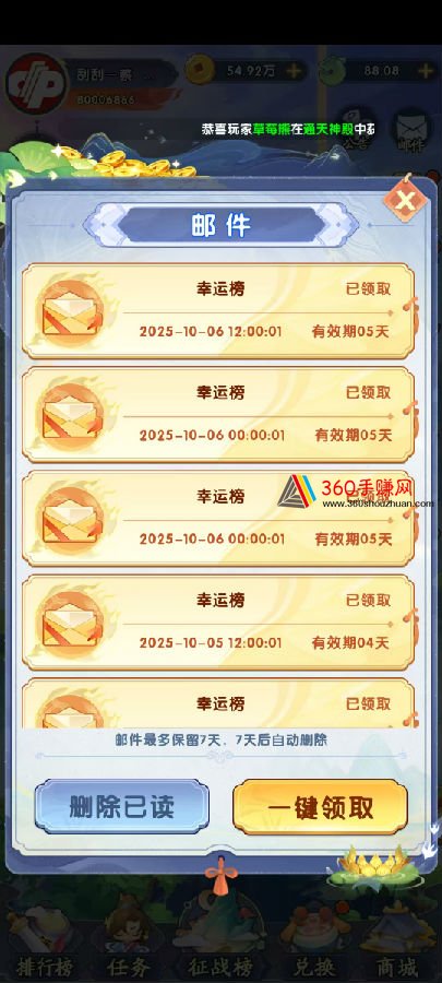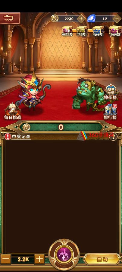 ⑤后续就是每天打开app,进【通天神殿】,用4500金币挂机,一般打几分钟就能完成伤害3w,打开每日挑战,用1奖券兑换1元。