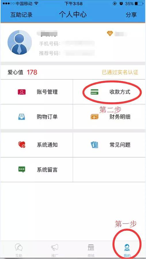 按照图示,点击绿色订单,进入查看收款人的收款信息和收款途径。