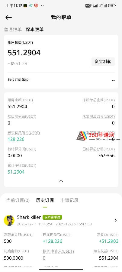 上次发完帖子,过几天就解套了,跟单本金500u+订阅费用15u。