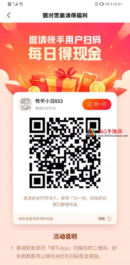 每天扫码领下快手的红包,每天都可以领,不要浪费