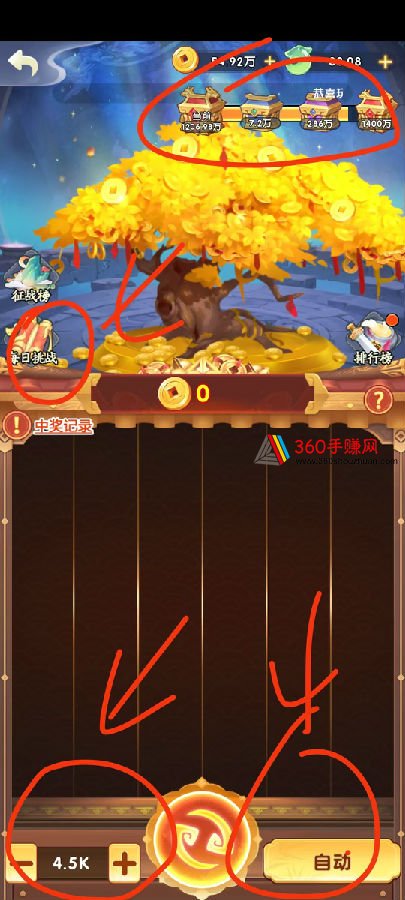 选择4500金币的档位,打开自动,用送的金币挂机,一会儿就能提现1个0.3