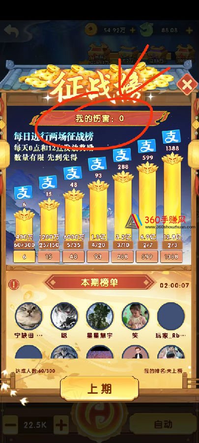 ②金币输完后,点征战榜,我的伤害(也就是盈利金币)看下,一般300w以上金币就可以继续打