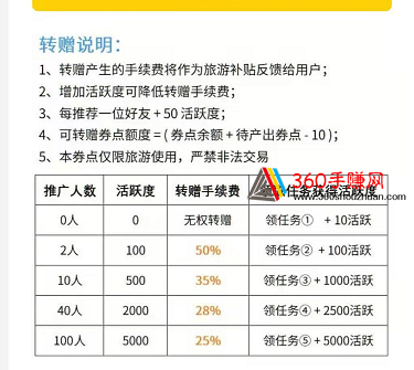 券点余额的50%(扣除系统送的10),可以兑换旅游用品和旅游特产。