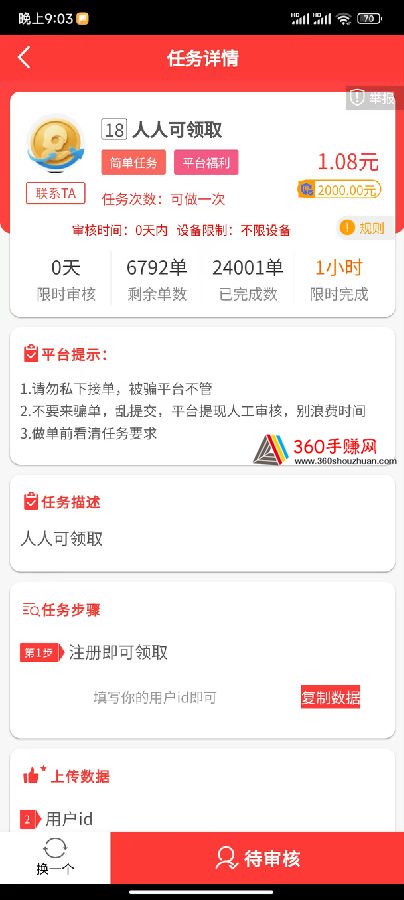新出一个赏多帮,刚上新,没什么任务,开始注册送2.08元,可惜看到的晚了,现在只有1.08元。