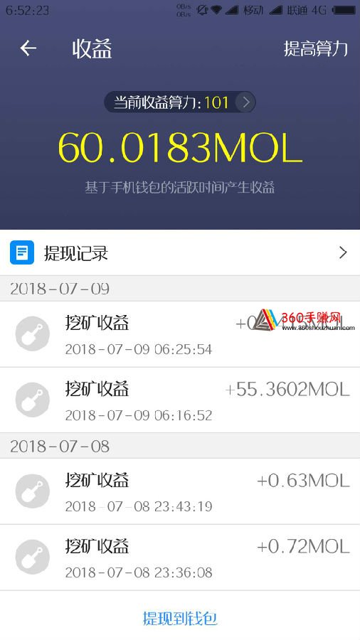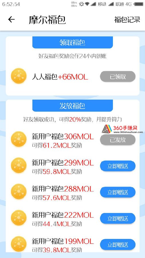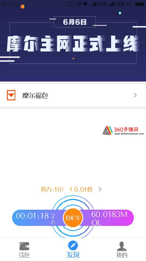 注册摩尔钱包每人均可领取一个66MOL福包 注册方式:扫码注册登录。 注册、下载APP、登录后,注意进入“我的”界面进行“真人认证”和“钱包备份”,“真人认证”只需简单视频;认证后到“发现”中开启挖矿和领取福包。 笔者7月8日晚上10:30开启挖矿,到第二天早上一共8小时挖矿收益60个MOL。目前摩尔私募价格:1 ETH = 750,000 MOL,也就是说1个MOL大约0.4分钱,60个MOL折合0.24元;邀请前7个好友还可提升算力到1.7倍,每天保守挖矿时间(APP活跃不退出)按12小时计算,每币按私募价计算收益:60/8×12×1.7×0.004=0.612元。 各位是不是嫌少了?你要知道这是按私募价格计算的!而且每天仅按12小时计算,完全可以设置保持APP一直驻留内存,那就是翻倍的挖矿时间!重点是:MOL安全持有的升值空间不是大多数的野鸡币可比的,指不定百倍币就在我们手中诞生了,“一币一嫩模”也不是不可能!先下手为强,占个坑再说!! https://www.mol.one/http://m.sohu.com/a/234073405_773421 加入福利QQ 群:346228565 每天不定时更新各种项目本群不能发广告,喜爱广告的 各位请勿申请。有新项目的亲。私聊发给测试啊、小白啊。大家一起交流前进、前进、前进、啾啾啾。。 如果想了解网赚消息,没事撸点实物以及话费现金之类的小羊毛,那老铁你关注对了