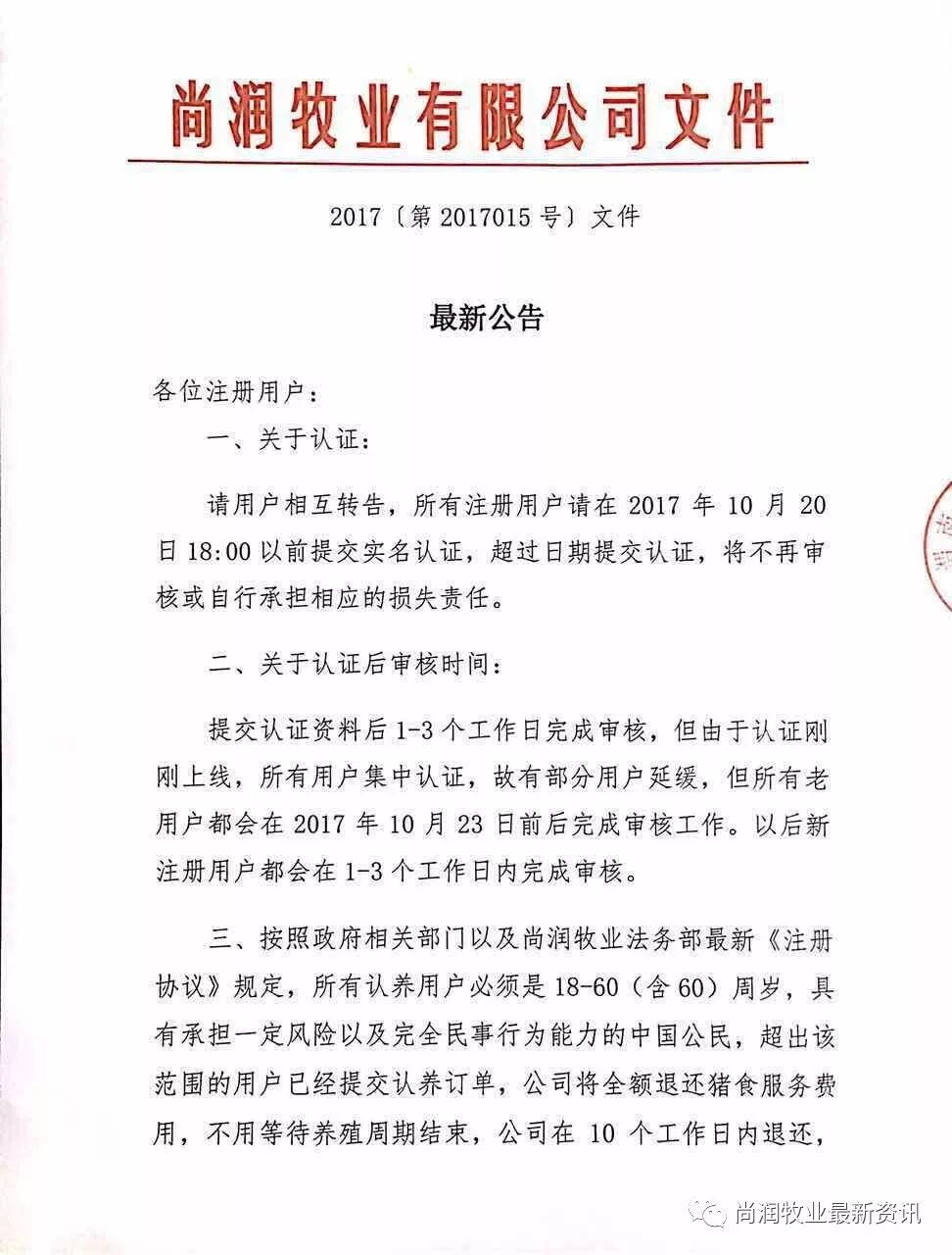 尚润牧业关于实名认证的公告【很重要】
