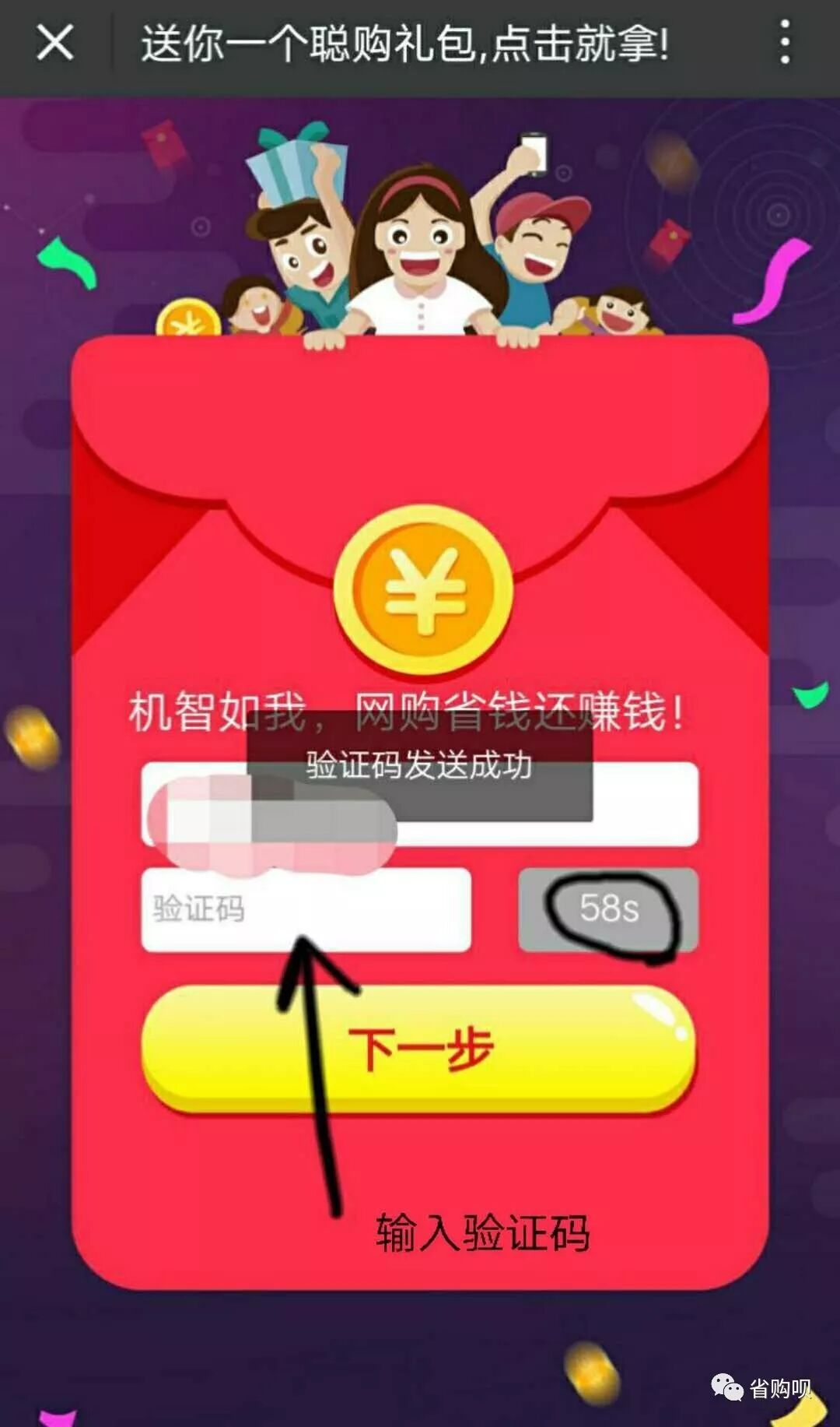 4.收到验证码短信后,填写验证码