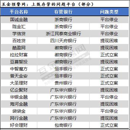 据不完全统计,目前银行存管上线的有超600家平台,现已有十多家平台出现停业、提现困难、跑路等问题。