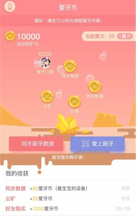 用户还可以在公共矿池中完成指定的刷牙任务,获取算力值,继续得到奖励。32teeth将根据算力总量的实际情况向公矿中定期投放爱牙币,供用户持续挖掘。而爱牙币可以兑换牙膏、牙刷、牙线、流量卡等商品以及洗牙等服务。
